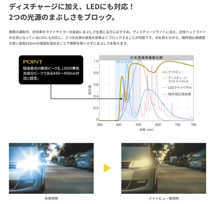 近年、車のヘッドライトがLED化していることもあり、夜間運転がまぶしいというお声を多く頂戴しております。