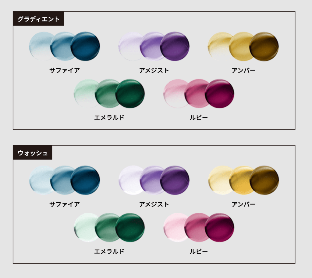 この5色に対して、レンズの色の入り方が2タイプあります。